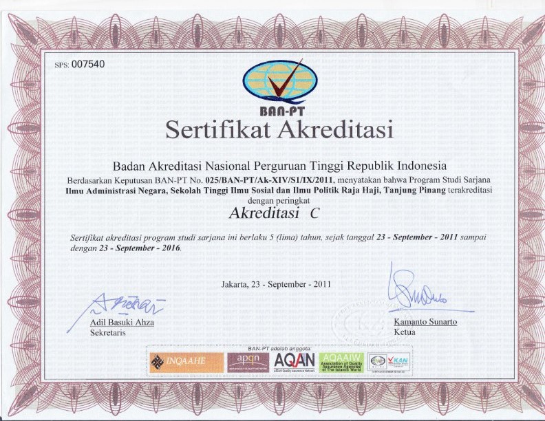 9 Sertifikat Akreditasi Program Studi Administrasi Publik 2011-2016 Download