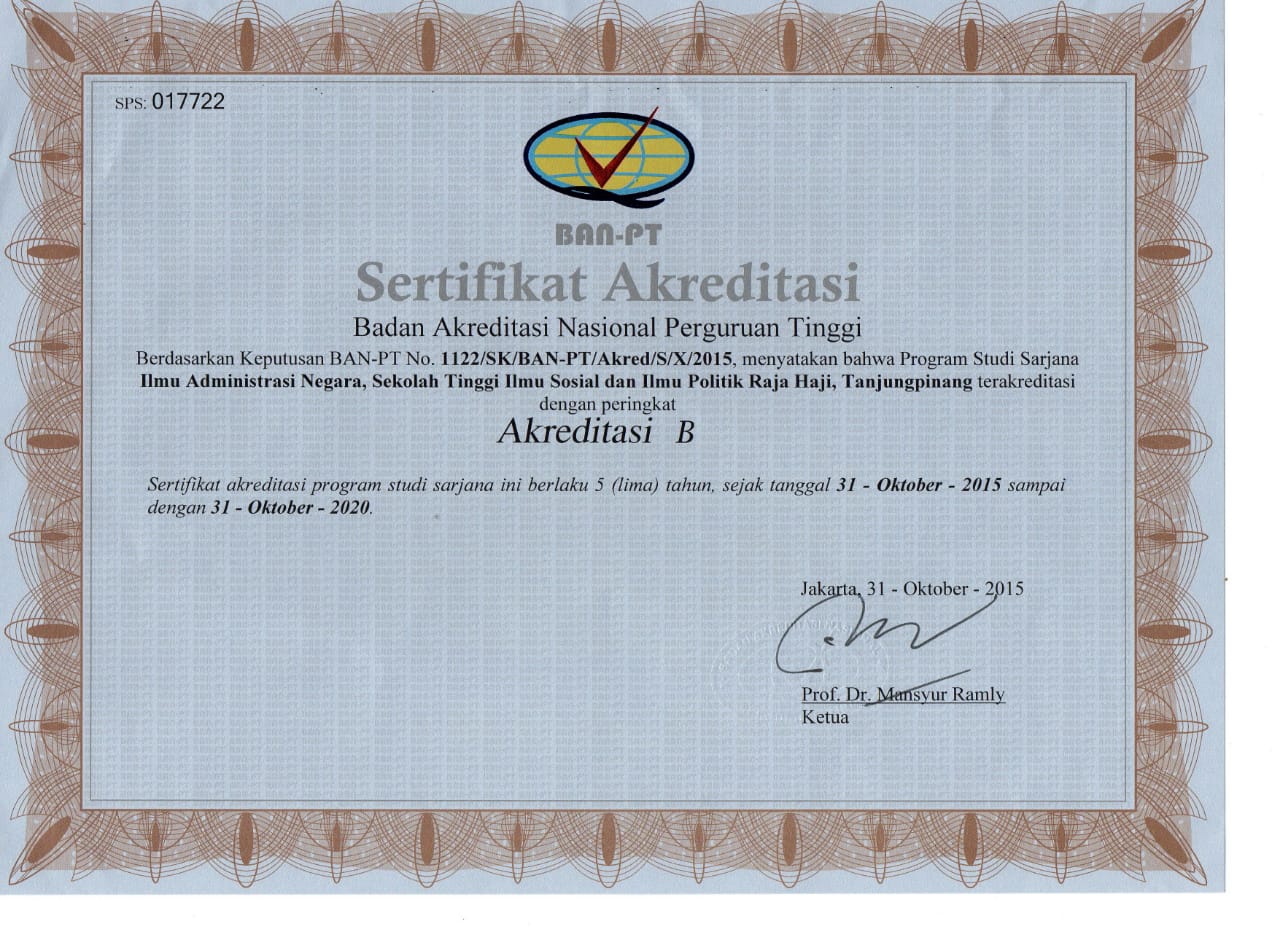 8 Sertifikat Akreditasi Program Studi Administrasi Publik 2015-2020 Download