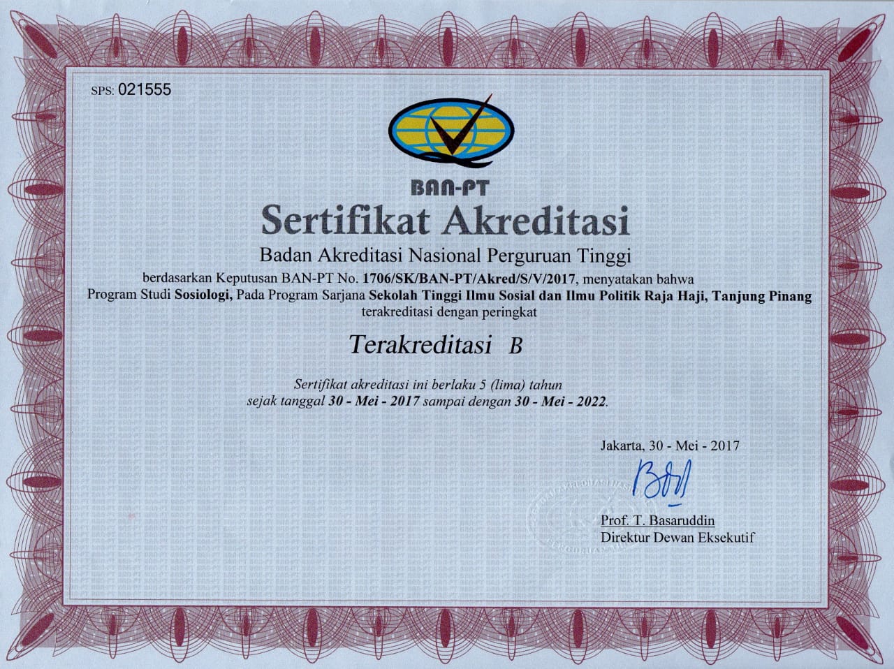 5 Sertifikat Akreditasi Stisipol RH 2021-2026 Download